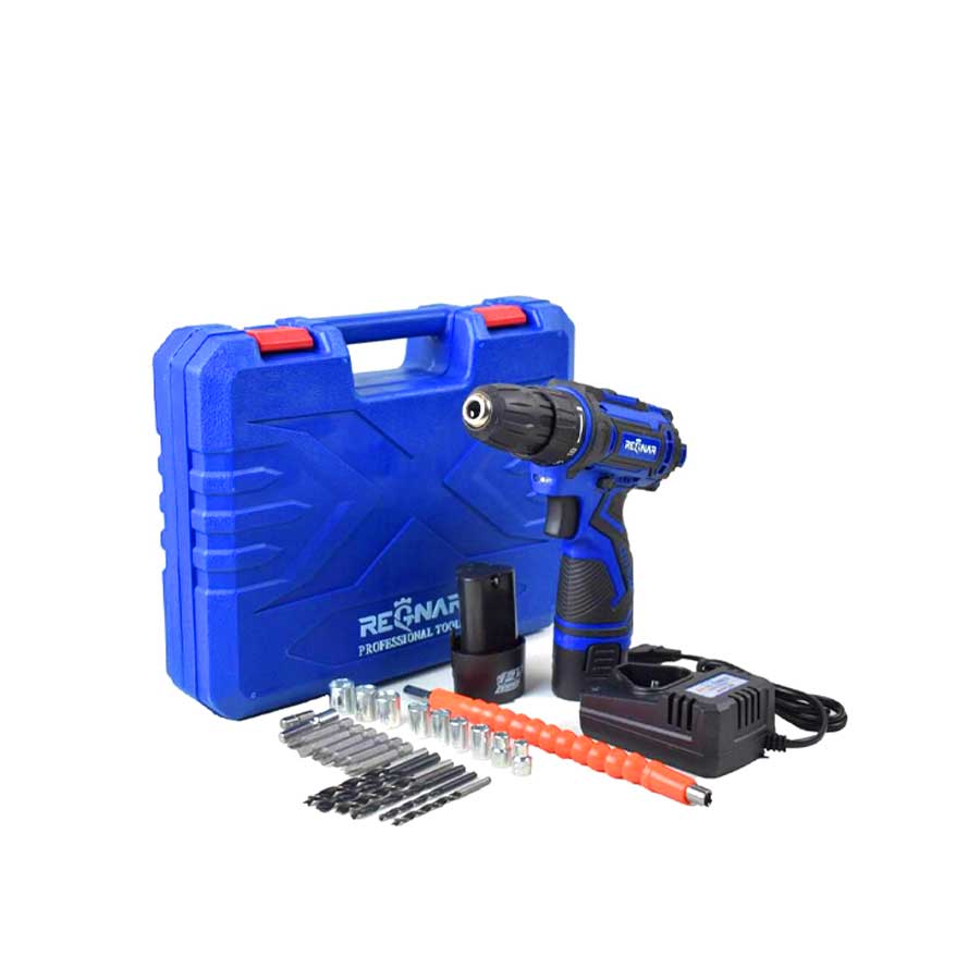 دریل پیچگوشتی شارژی 12 ولت دو باطری با لوازم Regnar